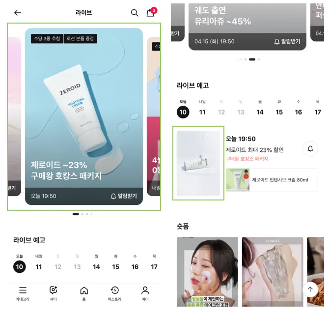 매력적인 전시 소재는 효과적으로 라이브 유입을 유도합니다.