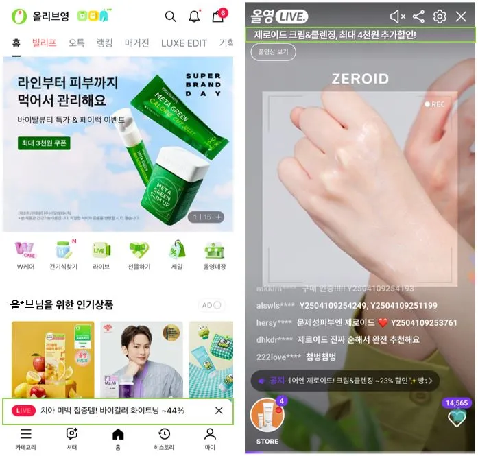 브랜드와 상품, 혜택이 돋보이는 문구는 효과적으로 라이브 유입을 유도합니다.