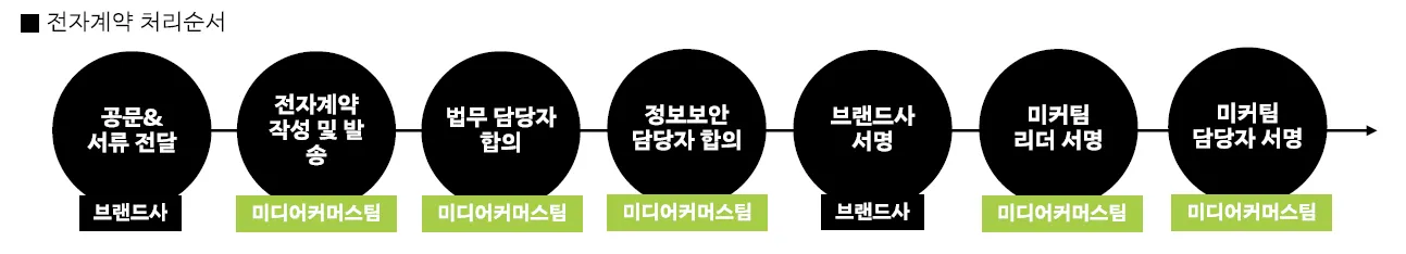 방송업무협약서는 전자계약으로 진행되며, 방송 D-2일전까지 반드시 체결 되어야 해요. 올영라이브 담당자가 전자계약을 발송하며, 미체결 시 라이브 진행이 불가하니 유의하세요