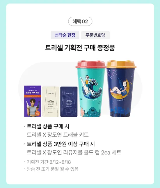 ex) 방송 상품 3만원 이상 구매 인증 시, 클렌징 오일 포함 구매 인증 시