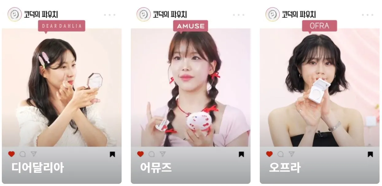 인플루언서(or 쇼호스트)가 실제 사용하는 찐 파우치를 화면에 노출시켜, 상품에 대한 스토리텔링 강화
